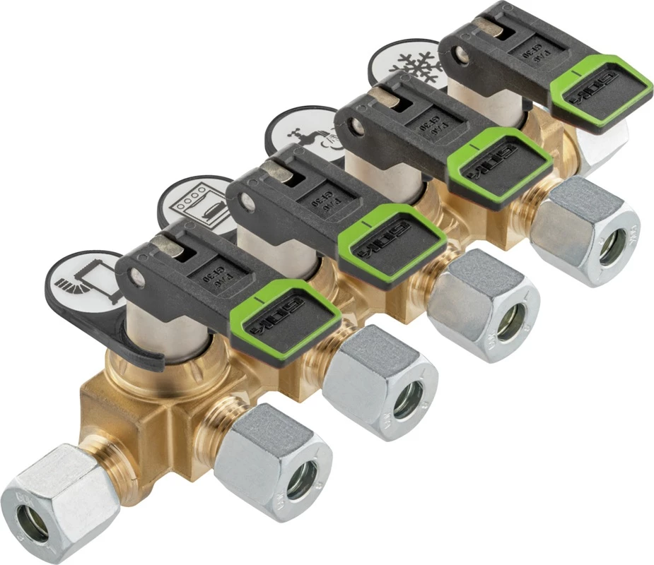 Gok sulkuhana kääntövivulla - ergonominen vipu - värikoodattu auki (vihreä) ja kiinni (punainen) - pieni painehäviö optimoidun toiminnan ansiosta - sisältää symboleilla varustetut klipsit... Lue lisää